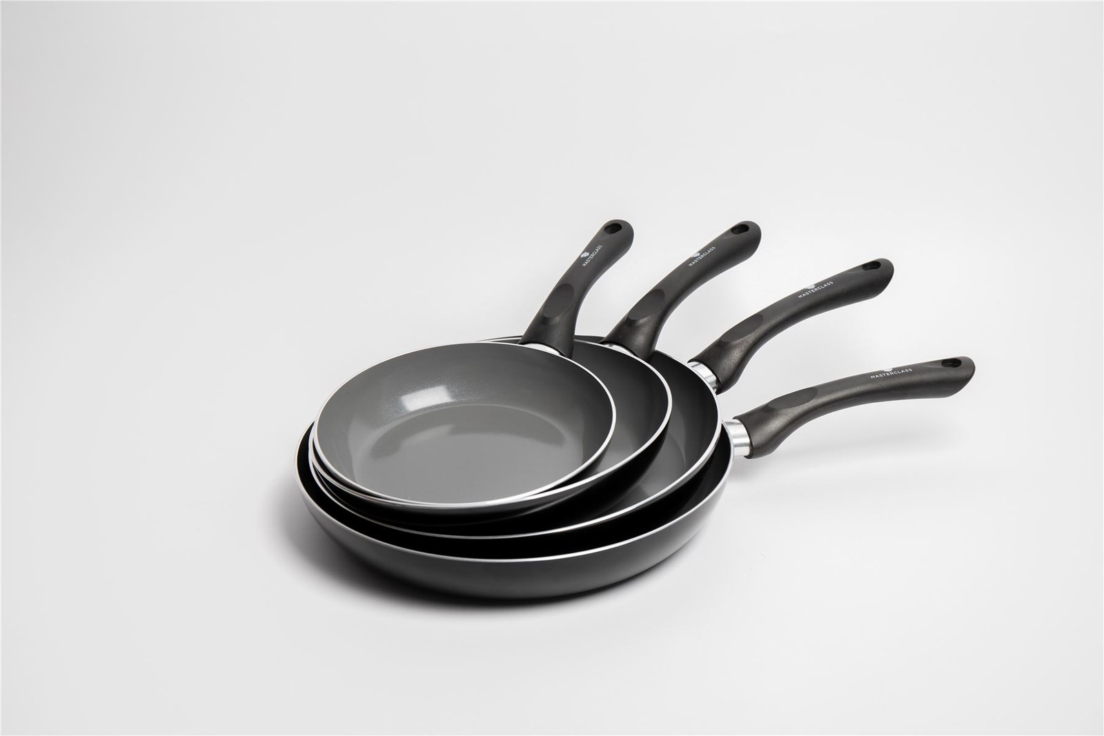 MasterClass 3pc Ceramic Non-Stick Eco Frying Pan Set with 3X Induction-Safe Frying Pans, 24cm, 26cm and 28cm