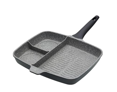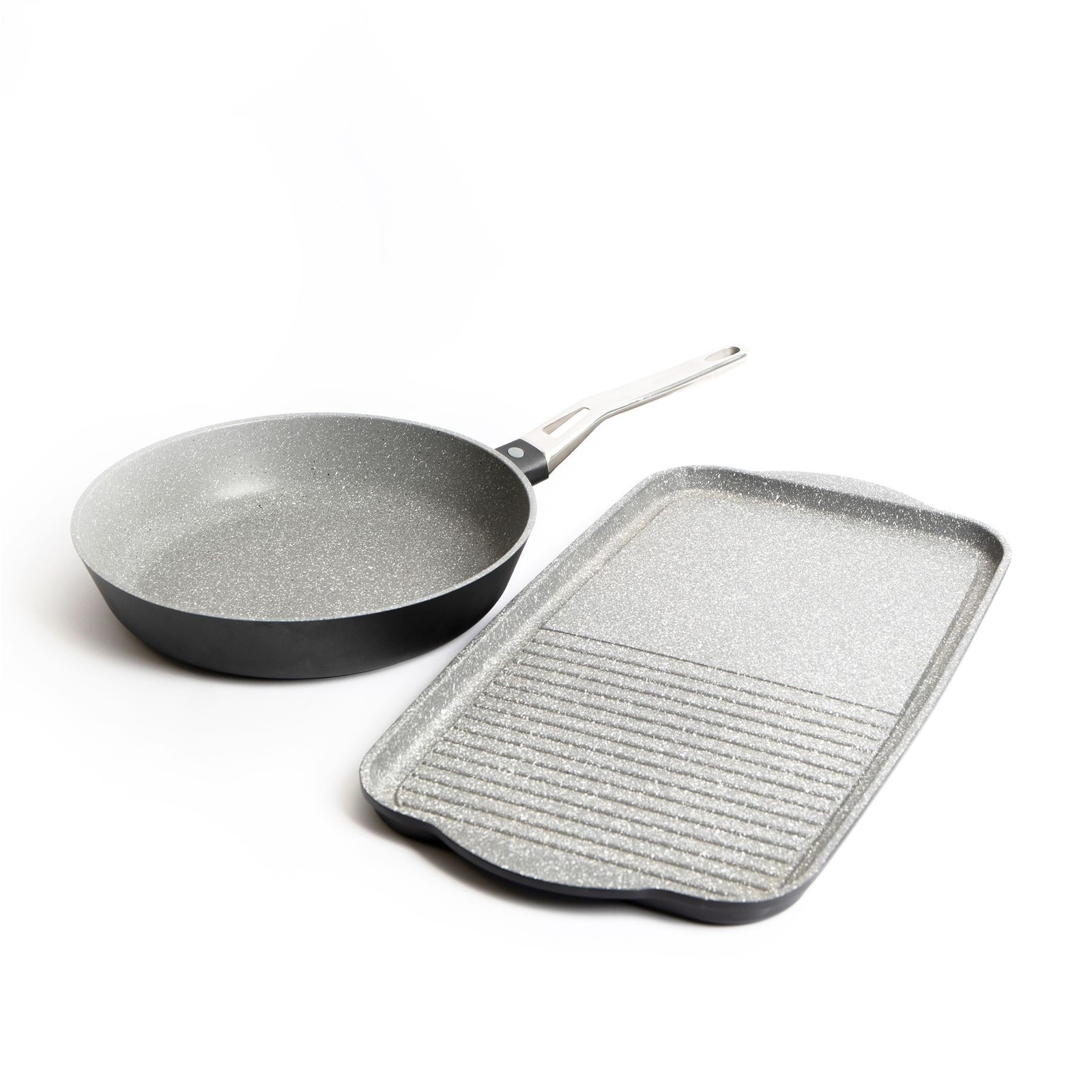 2pc Induction-Safe & Non-Stick Cast Aluminium Pan Set with 28cm Frying Pan and Dual Griddle Tray