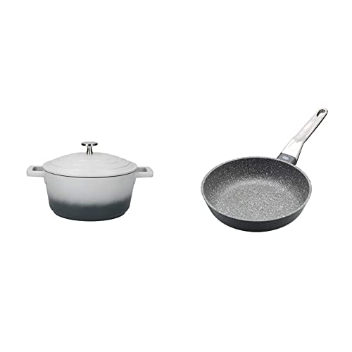 MasterClass Small Casserole Dish with Lid, Lightweight Cast Aluminium, Induction Hob and Oven Safe & Cast Aluminium Induction-Safe Non-Stick Frying Pan, 20 cm (8"), Grey