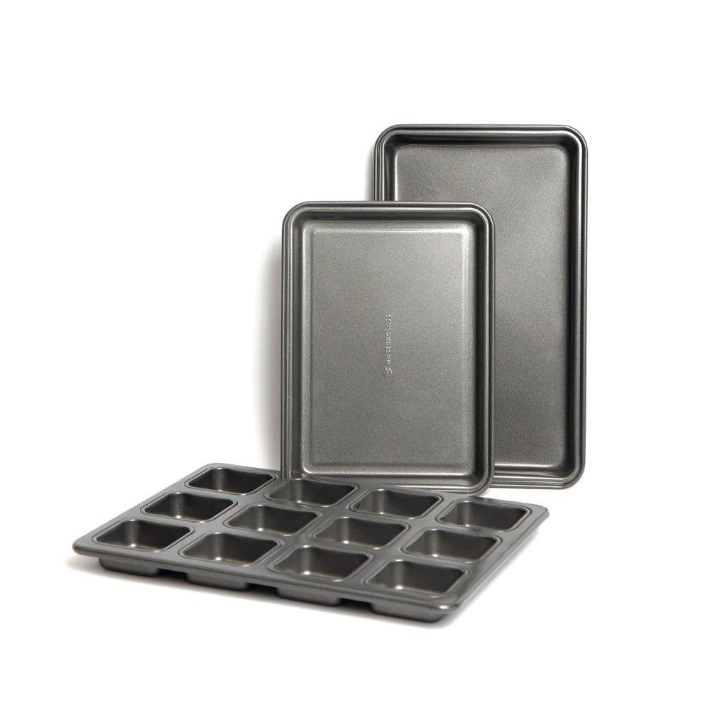 3pc Non-Stick Brownie Baking Set with 2x Standard Brownie Pans and 1x 12-Hole Individual Brownie Pan