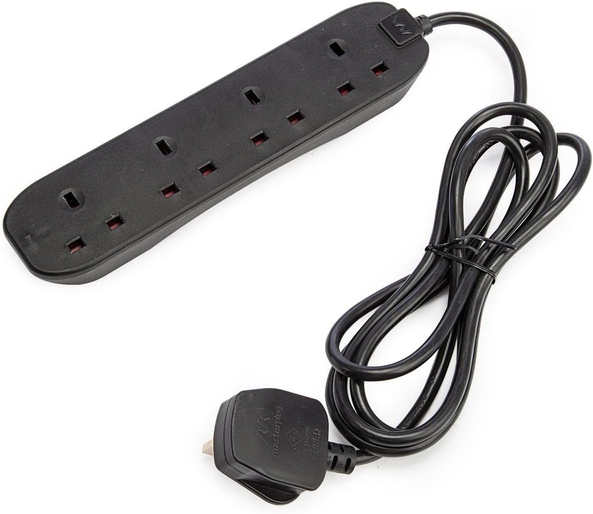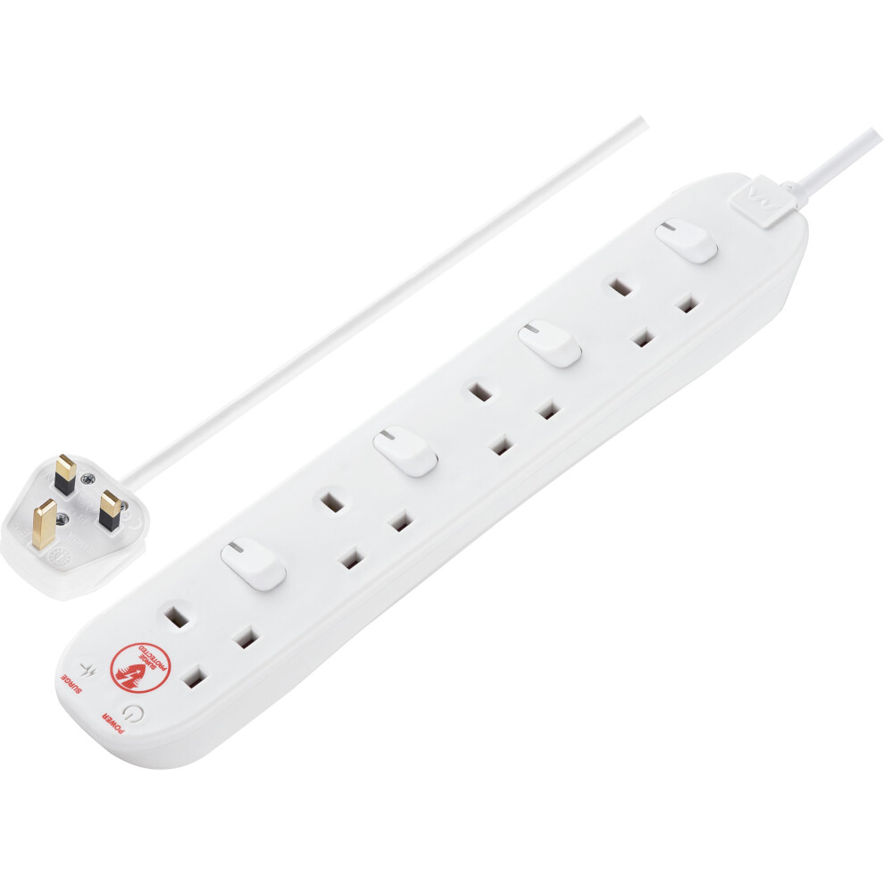 Masterplug Four Socket Extension Lead, Surge Protection, Individual Switches, Po