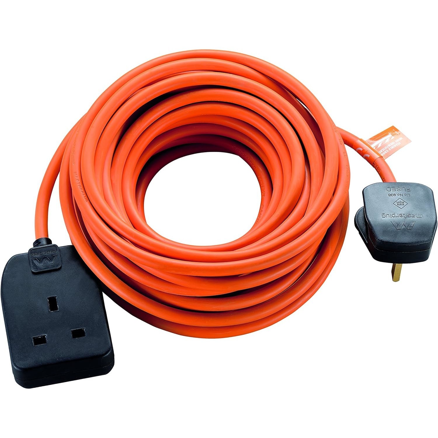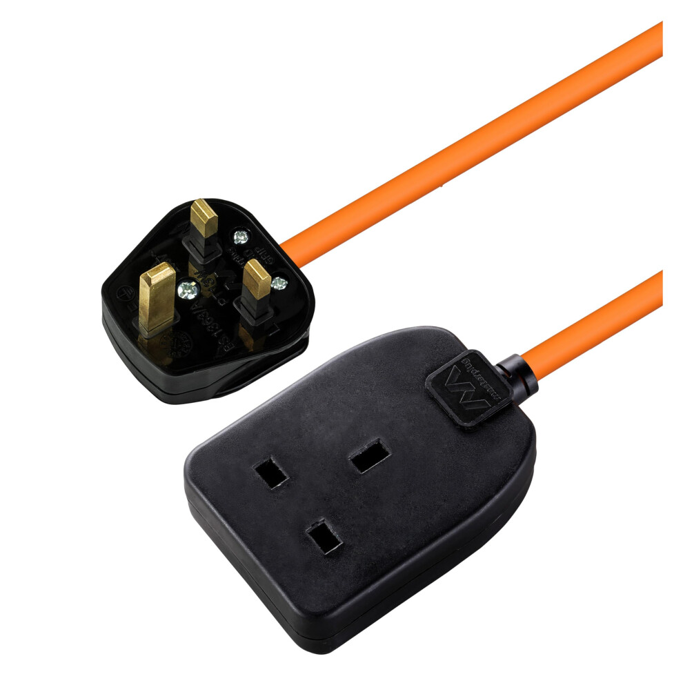 Masterplug Outdoor Extension Lead – 10m, 1 Socket, Orange Cable, 13A