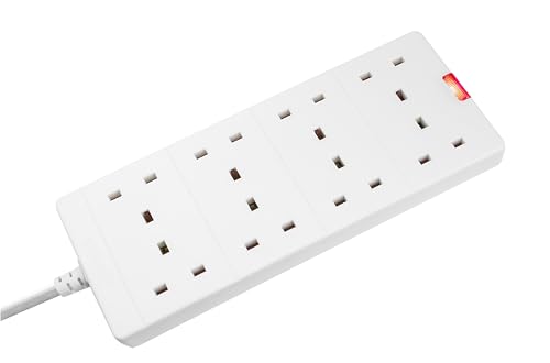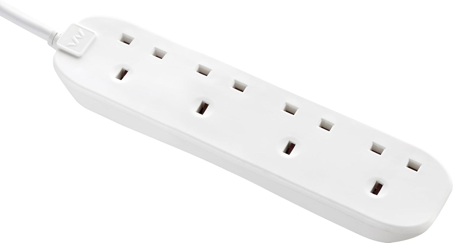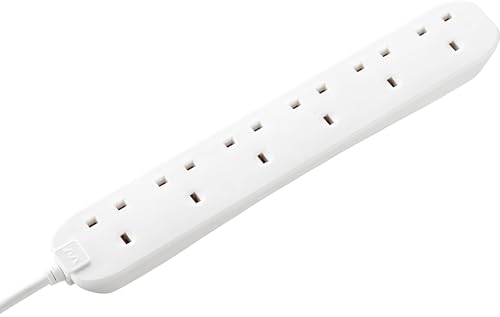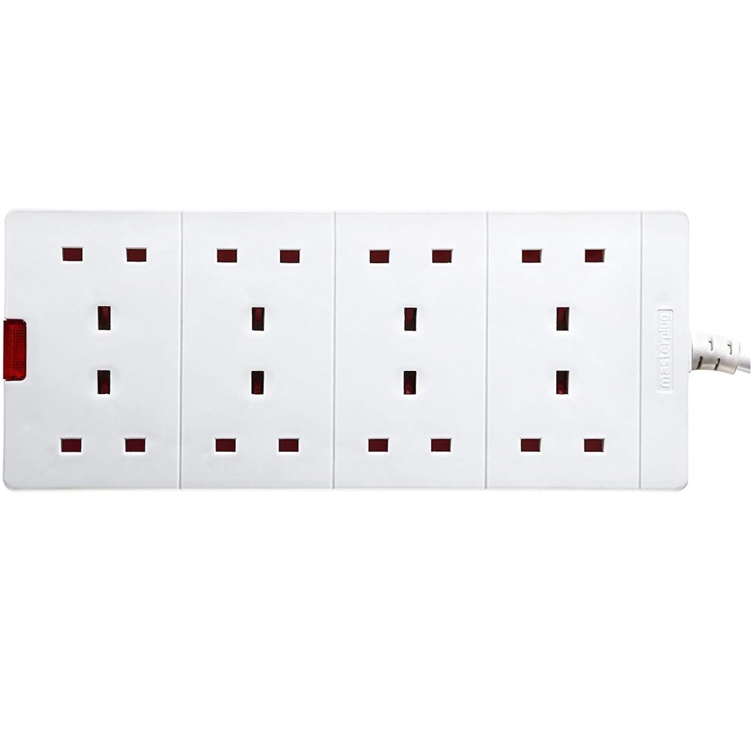 Masterplug Extension Lead 8 Gang 2m Cable White Multi Socket Power Strip 13 Amp