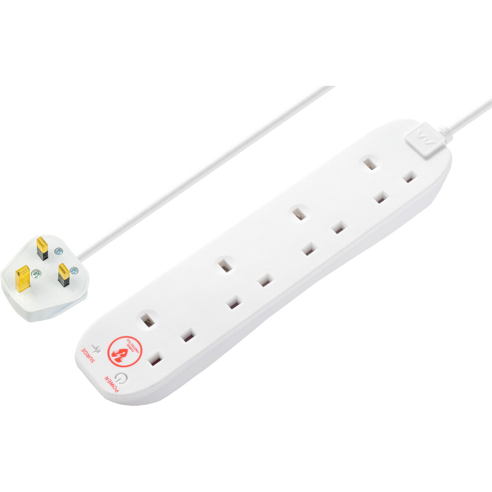 Masterplug Four Socket Extension Lead with Surge Protection, Power and Surge LED