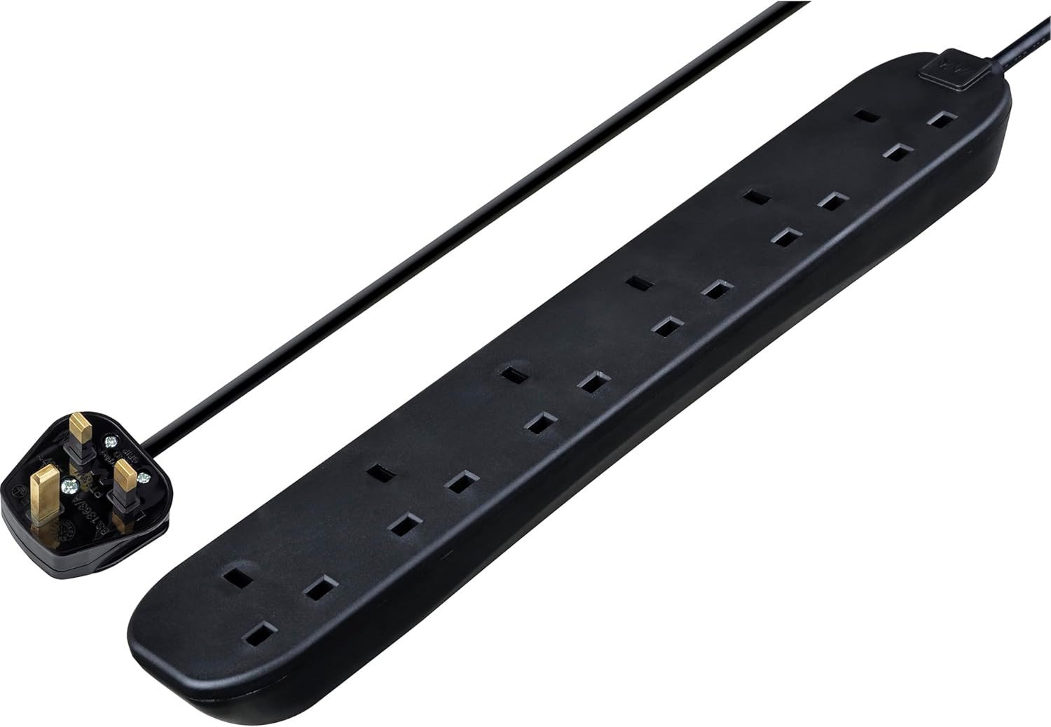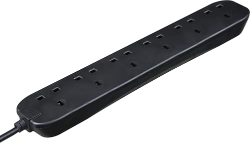 Masterplug Six Socket Extension Lead, 2 Metre Cable, Unswitched, 6-Way Plug Extension Cable, Power Strip, Basic Power, Black, 13A, 6G, 2m, BSG210NB