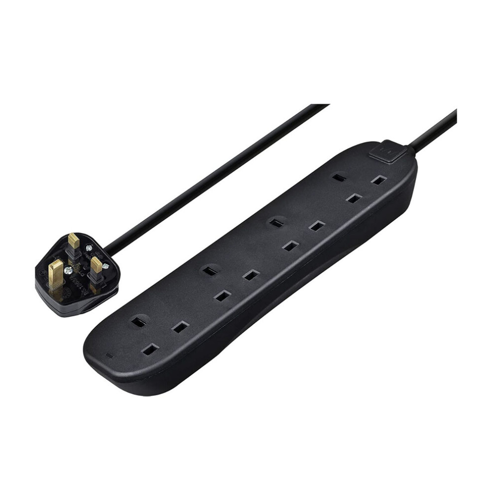 Masterplug 4 Socket Extension Lead 13A 2 Metre, Black