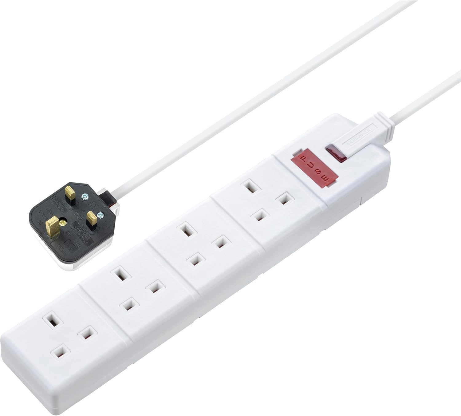 Masterplug, Four, Socket, Extension, Lead, Surge, Protection, Individual, Switches, Power, LED, Indicators
