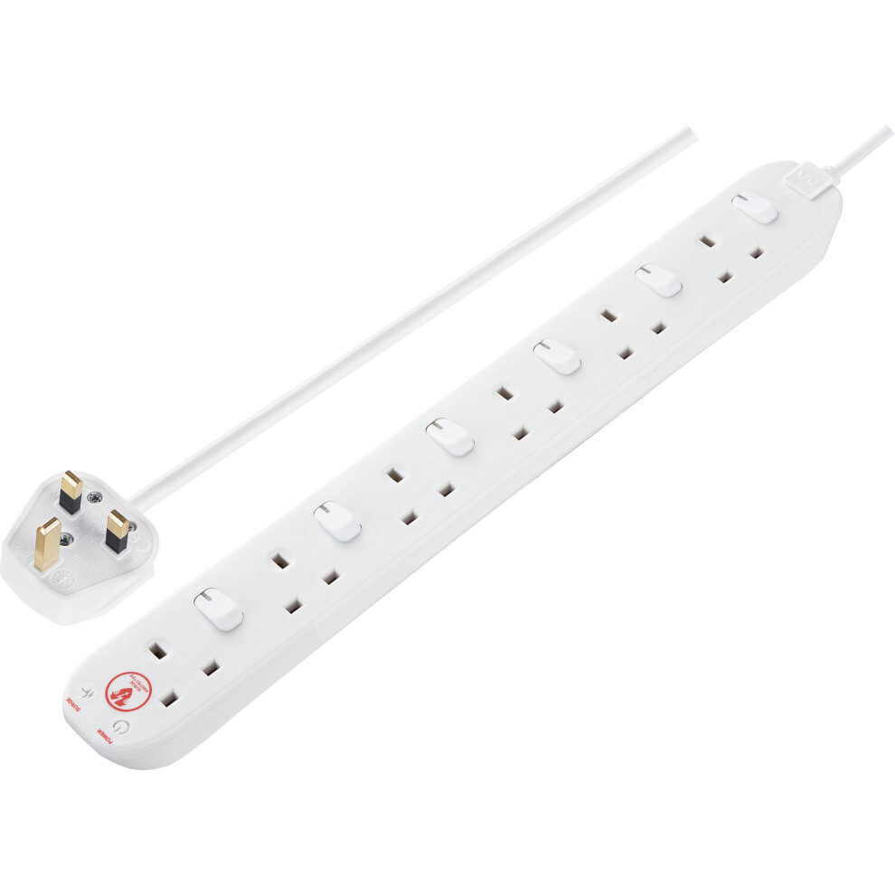 Masterplug Six Socket Extension Lead with Surge Protection, Power and Surge
