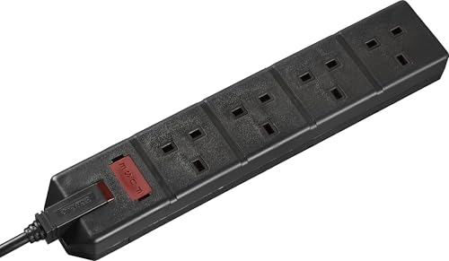 Masterplug Four Socket Extension Lead, 2 metre, 13 AMP, Black Switched and Fused