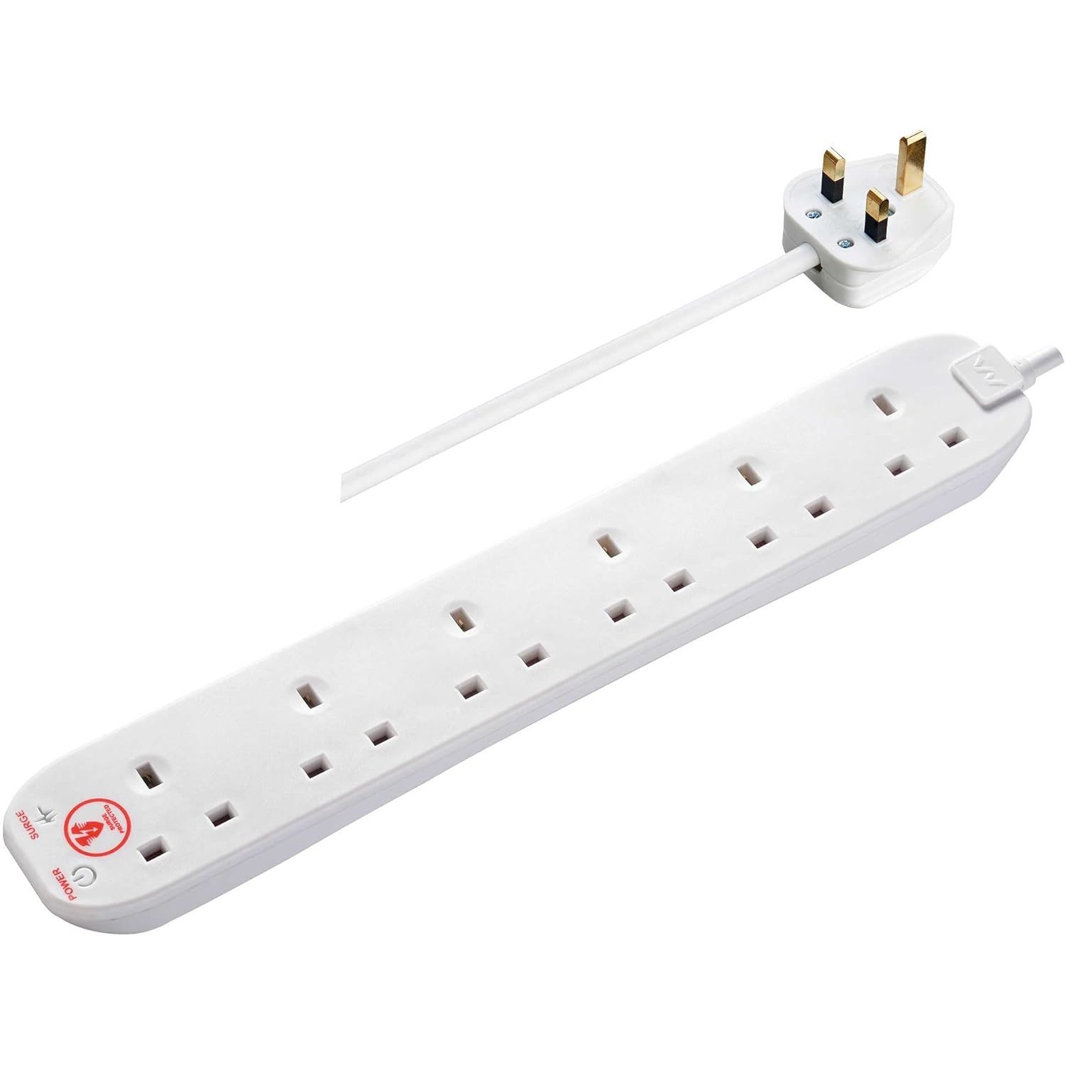 Masterplug Surge Protected Extension Lead 6 Gang 2m Power Socket Strip White UK
