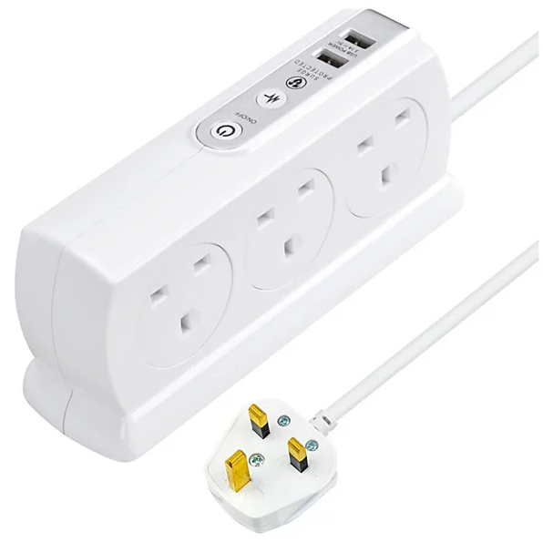 Masterplug Surge Extension Lead with 2 USB Ports Surge Protected SRGDSU62PW