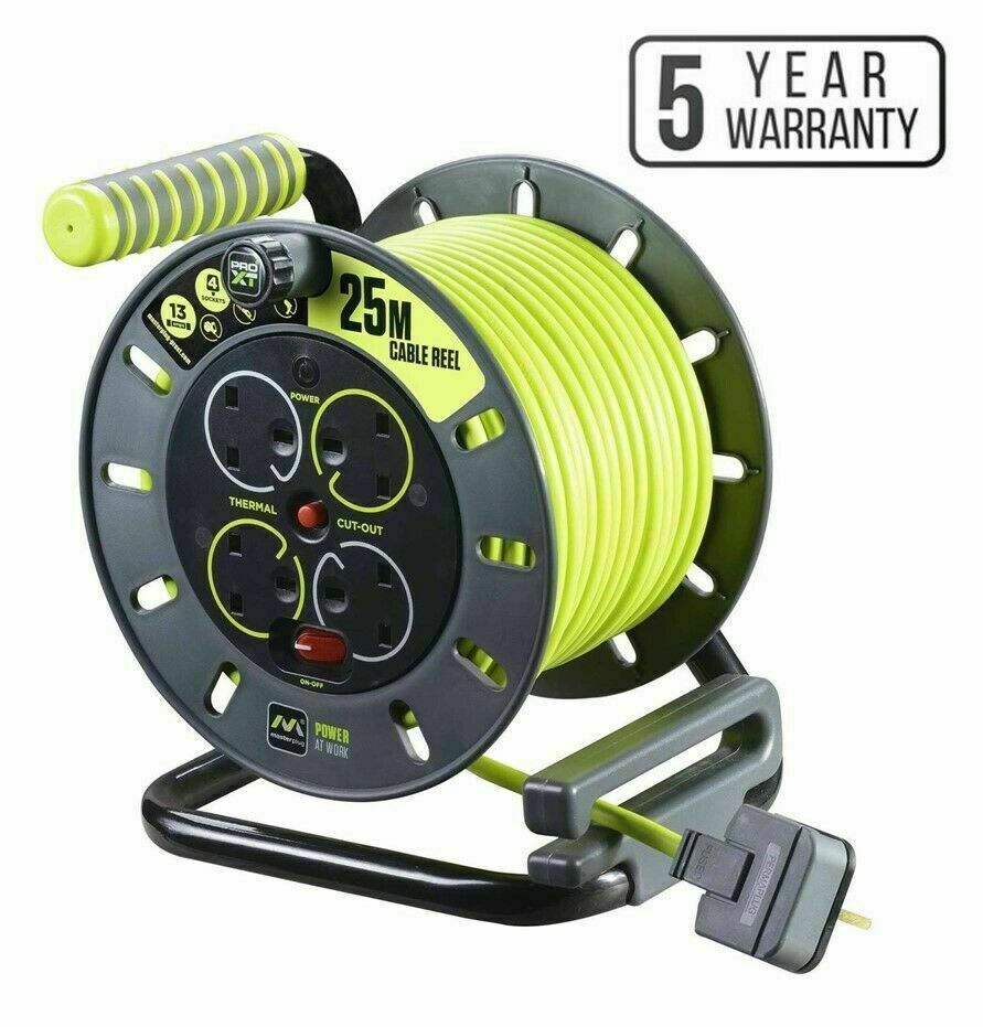 NEW 25M 13A 4 GANG SOCKET EXTENSION CABEL REEL OPEN SWITCH PRO XT MASTERPLUG UK