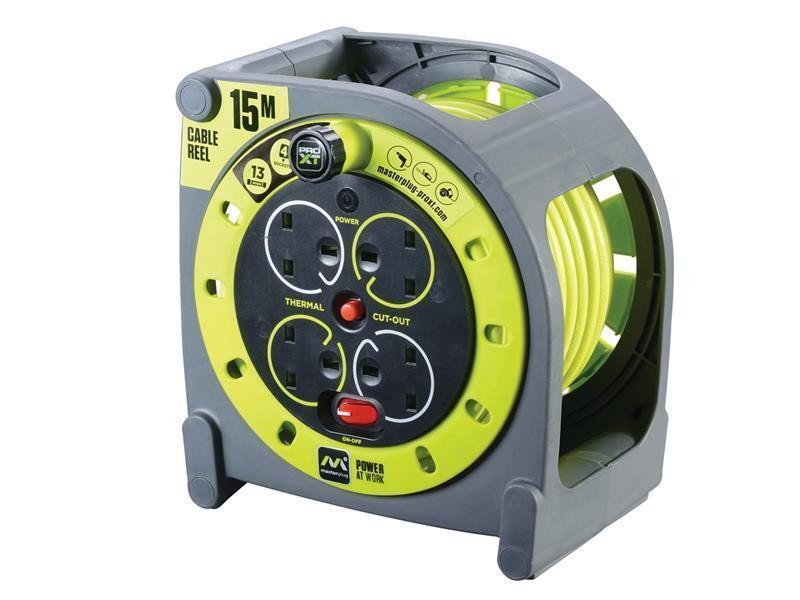 Masterplug Pro XT 4 Socket 13A Case Cable Reel 15m 240V
