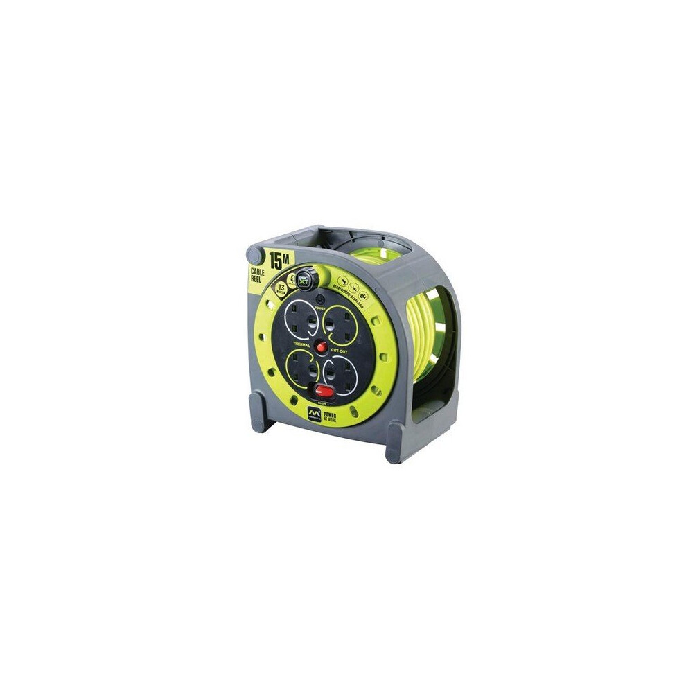 Masterplug 13A Pro-XT 4 Socket Cassette Reel High Visibility Cable - 15m