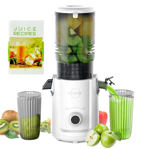 Hobsir hob Cold Press Juicer 135mm Masticating Slow Juicer with 300W Motor Large Feed Chute for Whole Fruits & Veg – Effortless Cleaning, Superior Yield (White)