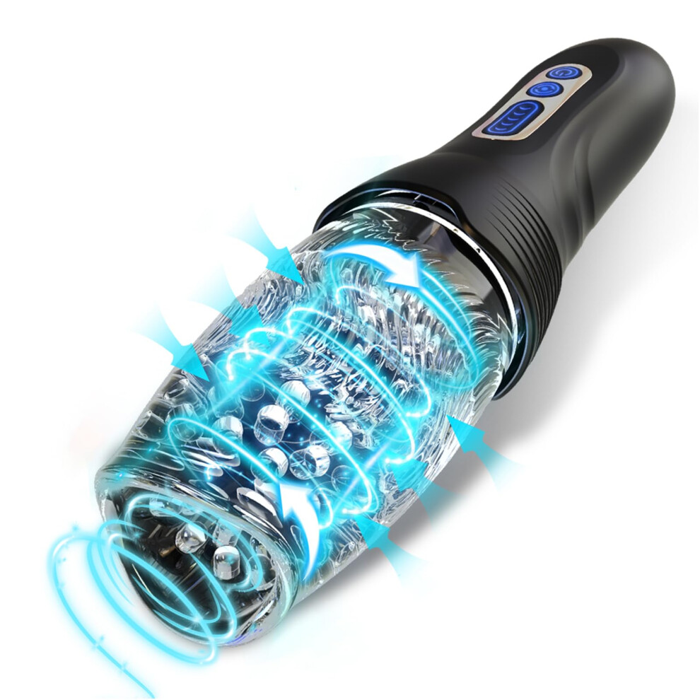 Electric Masturbation Cup for Men with 5 Rotational Speeds, 10 Vibration Modes, 3D Particle Channel, Black