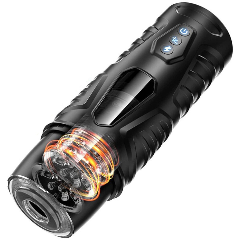 Men's Masturbation Cup, 7 Frequency Modes Heating, 3D Particle Channel (Black)