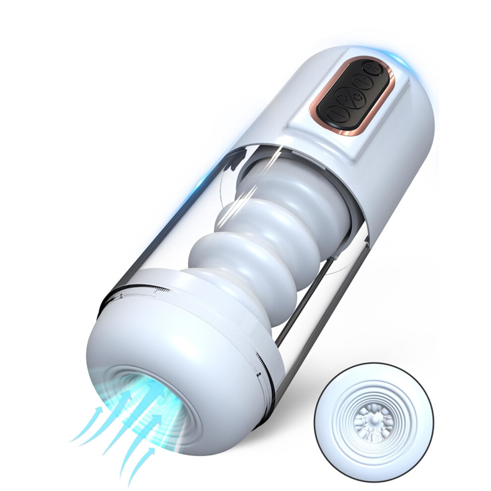 Elevable Electric Masturbation Cup for Men, 10 Frequency Telescopic Rotation, Realistic 3D Pocket Vagina, White