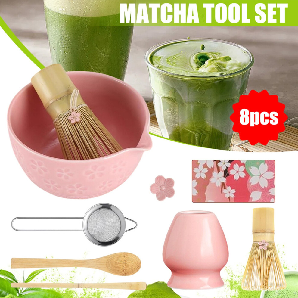 Matcha Whisk Set with Scoop & Sifter–Set of 6 Matcha Kit for Japanese Tea Ceremony(Pink)