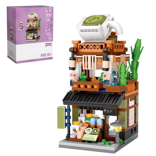 Japanese Street Matcha Shop Building Set, MOC Mini Street Scene Architecture Model with Traditional Onsen Design, Creative Display and Collection Set for Adults and Youth (379PCS)