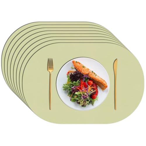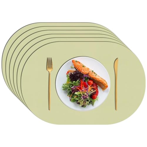 WAWPU Oval Placemats Set of 4/6/8, Heat-Insulating Leather Table Mats for Kitchen, Picnic(Matcha Green,Set of 6)
