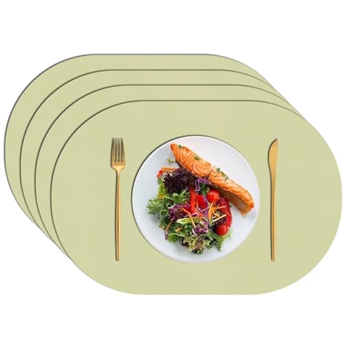 WAWPU Oval Placemats Set of 4/6/8, Heat-Insulating Leather Table Mats for Kitchen, Picnic(Matcha Green,Set of 4)