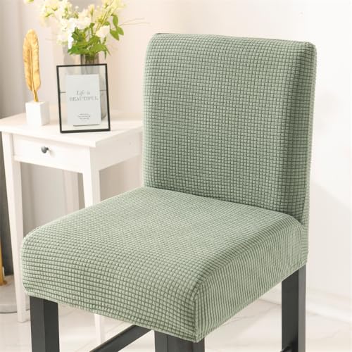 FANSU Bar Stool Chair Covers with Backrest Check Jacquard Stretch Bar Stool Covers Spandex Removable Washable Slipcovers for Kitchen Dinning Chair Counter Short Back Chair (Matcha Green,Set of 4)