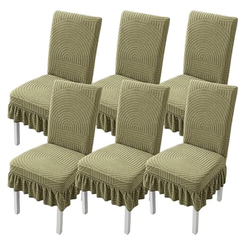 HDSDVNON Jacquard Polyester Dining Chair Set With 15cm Skirt Edge Design, Anti Slip Bottom Suitable For Family, Hotel, Banquet(Matcha Green,6 Set)