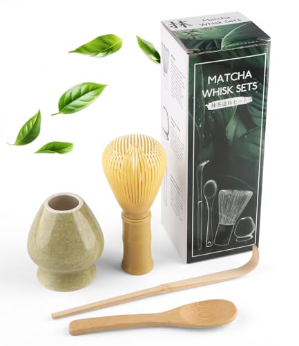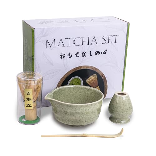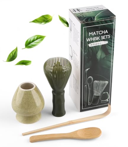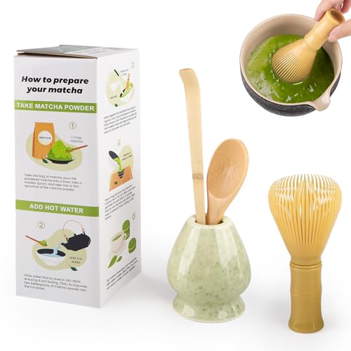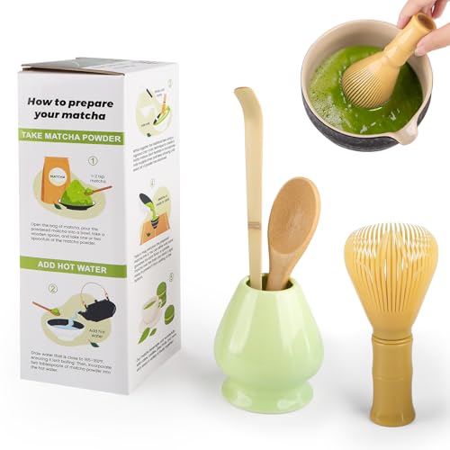 WE MAKE HOPE 4PCS Matcha Set, Matcha Kit Includes Matcha Whisk (Chasen), Matcha Scoop (Chashaku), Matcha Bowl, Ceramic Whisk Holder, Matcha Tea Kit for Tea Lovers, Classic Green Matcha Making kit
