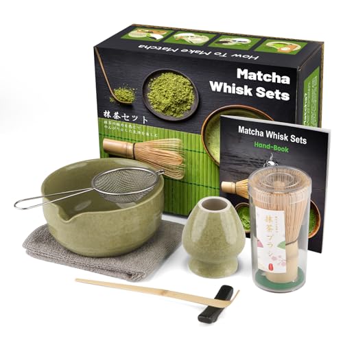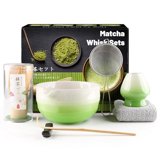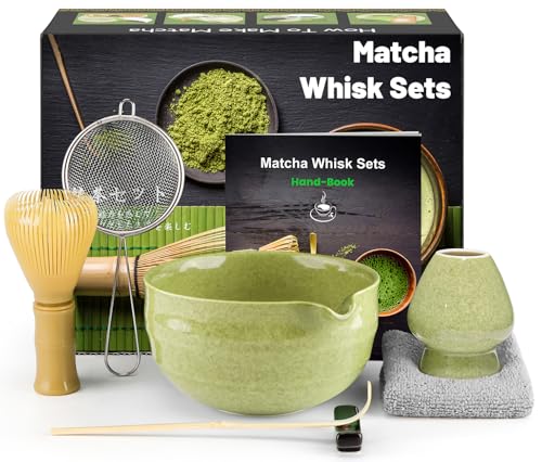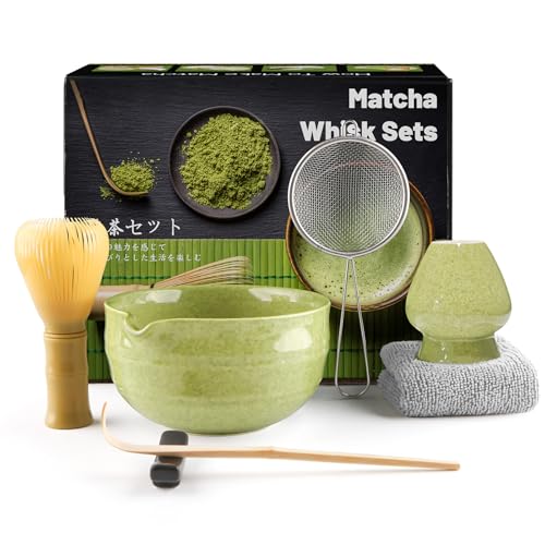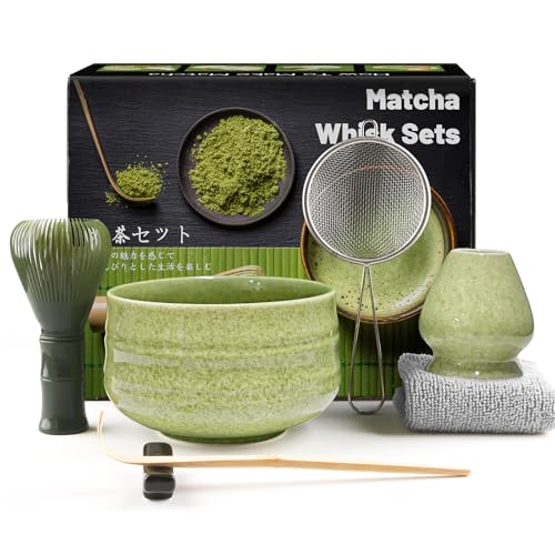Matcha Set (7-Piece) Which Matcha Whisk, Matcha Cup, Matcha Bowl, Chasen, Matcha Sieve, Matcha Spoon,Ideal Starter Matcha Kit for Easy Matcha Making (Matcha Green)