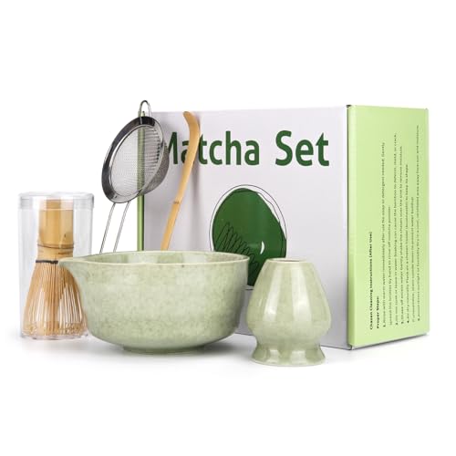 Spesh Matcha Whisk Set 5 PCS Japanese Matcha Tea Set Includes Ceramic Bowl, Bamboo Whisk, Whisk Holder, Sifter and Spoon Teaware Gift for Matcha Lovers and Tea Ceremony Fans(Matcha-Green)