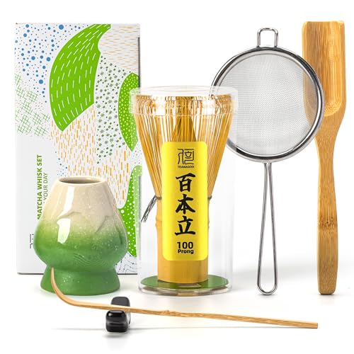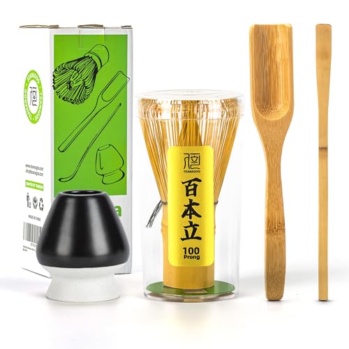 TEANAGOO Matcha Whisk Set,Matcha Whisk(100 prongs) with Green Holder,6-PCS Traditional Starter Set,Scoop(Chashaku),Tea Spoon,Bamboo Chasen for Making Latte,Ceremony Accessory,Gife for Friend/Family