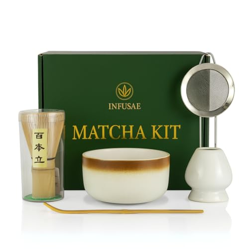 Matcha Kit – 5 Pcs Matcha Whisk Set with Bamboo Whisk & Scoop, Ceramic Bowl & Whisk Holder, and Stainless Steel Strainer – Complete Matcha Kit for Ceremony, Latte & Gift for Green Tea Lovers