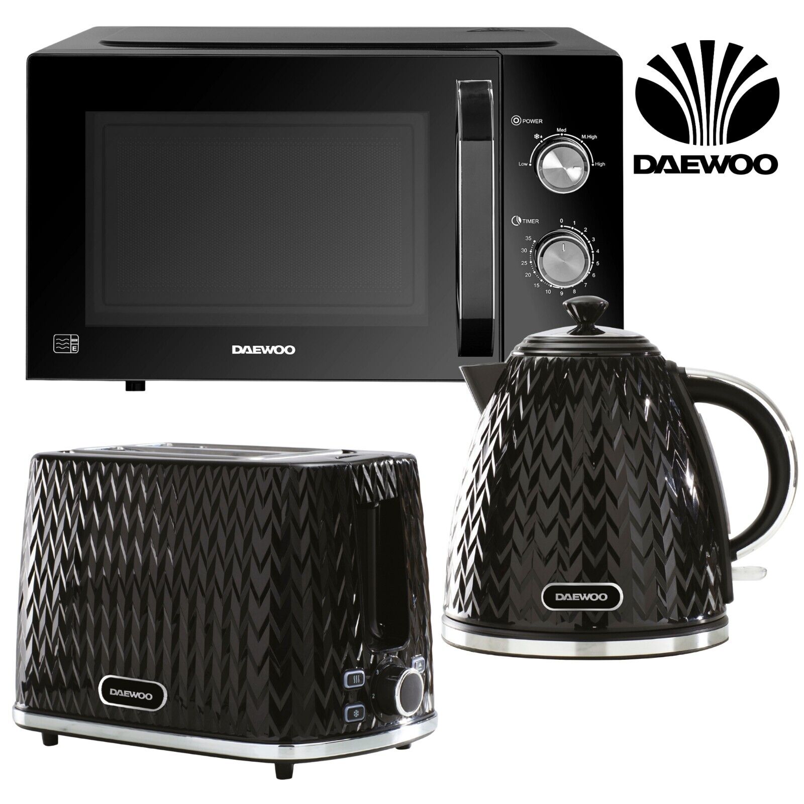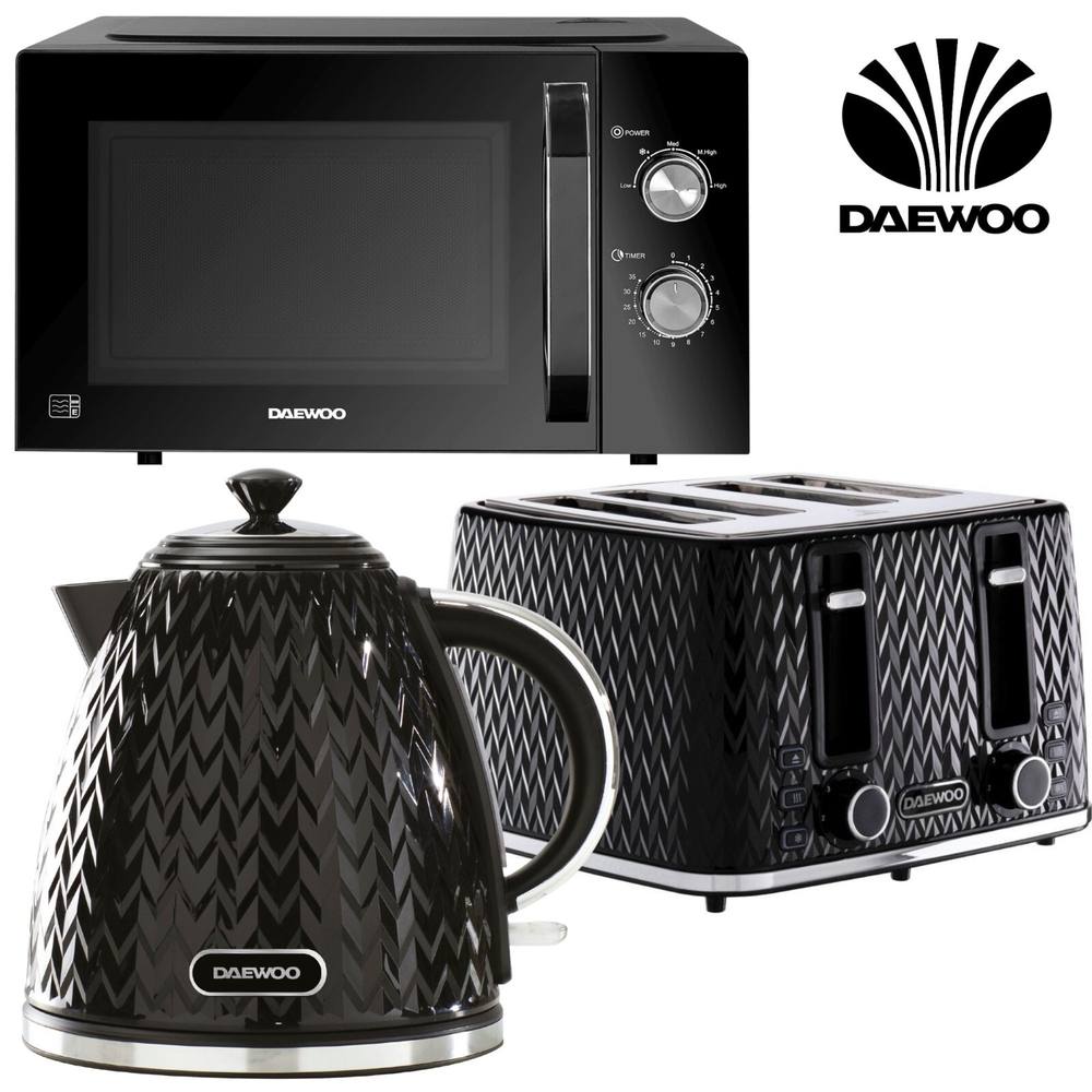 Daewoo Black 'ARGYLE' 3kW 4 Slice 23L Matching Kettle Toaster & Microwave Set | Size: 3 Pack