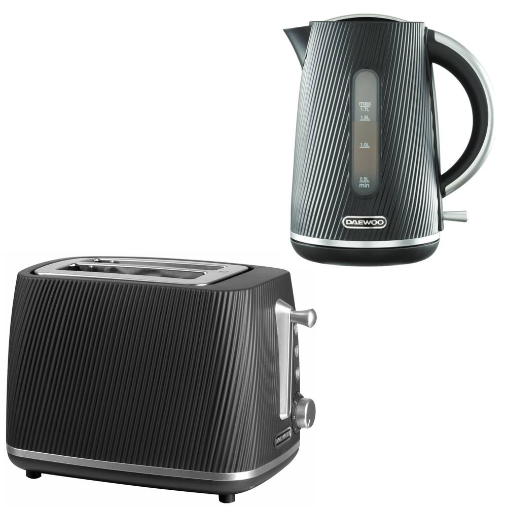Daewoo Sleek "Cascade" 1.7L Fast-Boil Matching Kettle and Toaster Set 2-Slice in Black