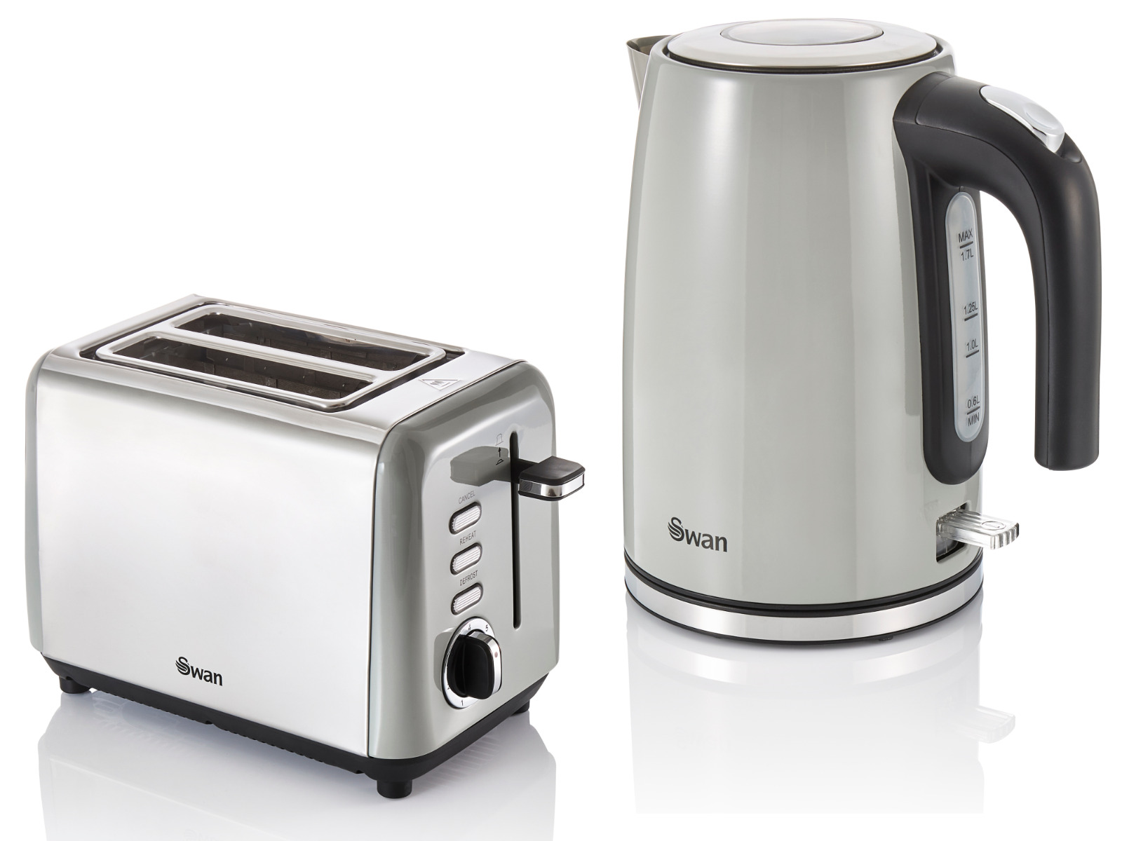 Swan Townhouse Grey 1.7L Jug Kettle & 2 Slice Toaster Modern Matching Set
