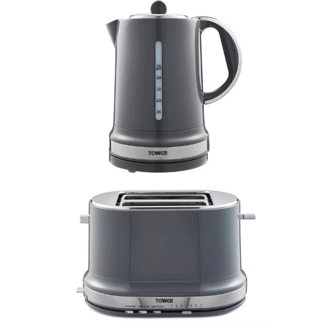 Tower Belle Graphite Grey 1.5L 3KW Jug Kettle & 2-Slice Toaster Matching Set