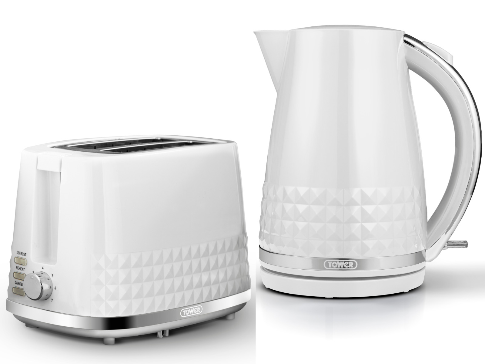 Tower Solitaire White 1.5L 3KW Jug Kettle & 2 Slice Toaster Matching Set