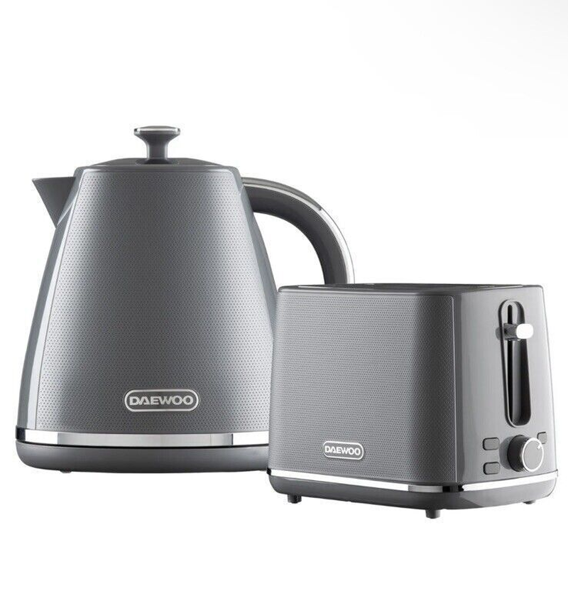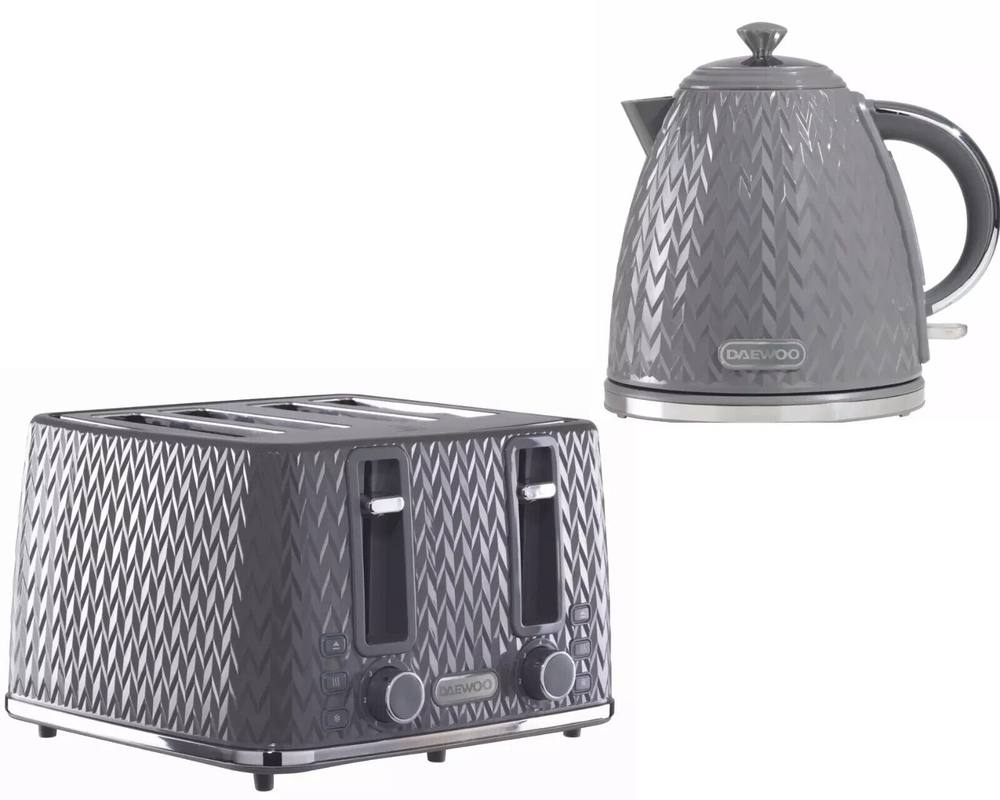 Daewoo Argyle 1.7L Jug Kettle And Matching 4 Slice Toaster Set In Gloss Grey