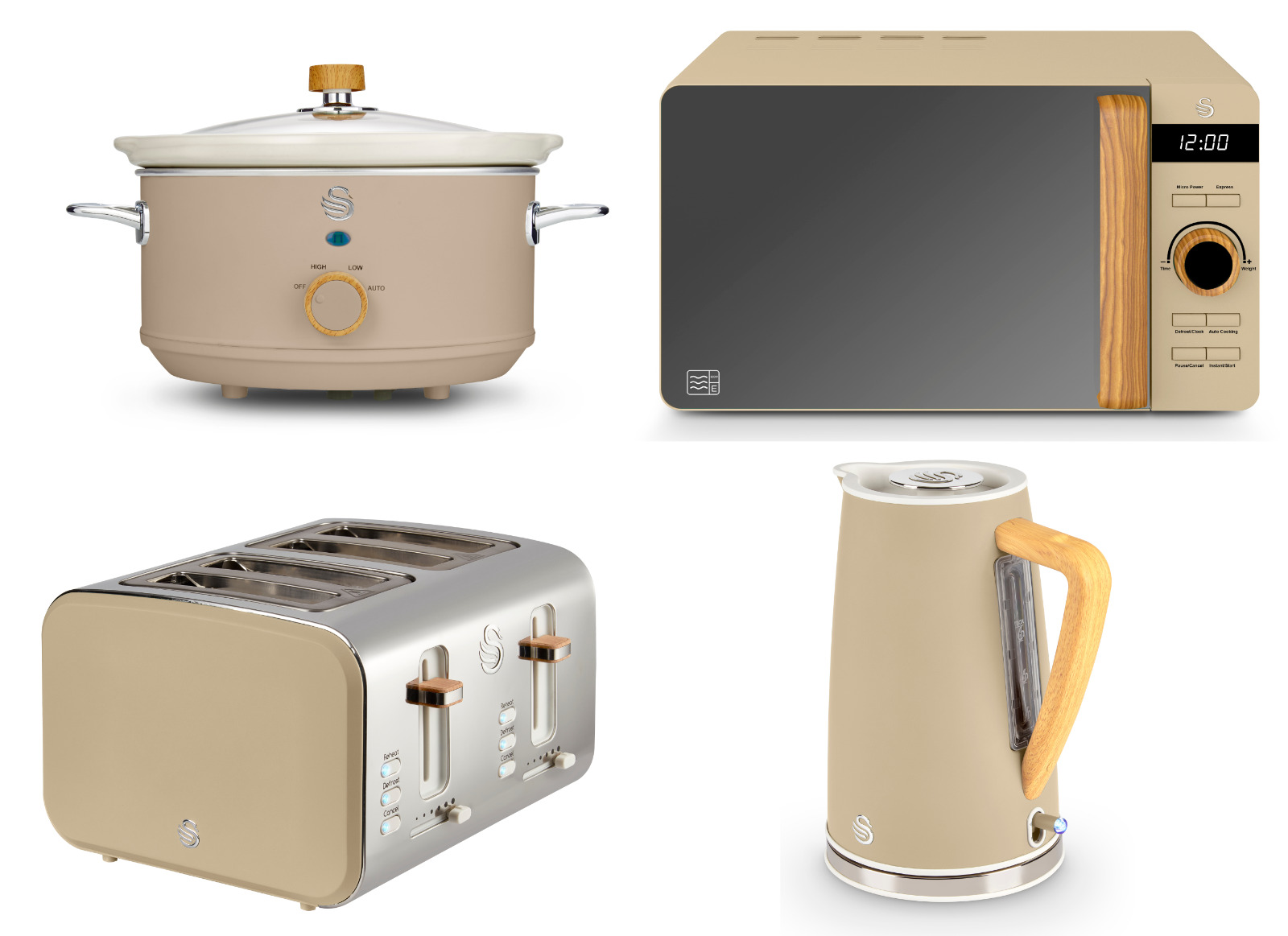 Swan Nordic Kettle Toaster Microwave & Slow Cooker. Matching Set Oatmeal Colour