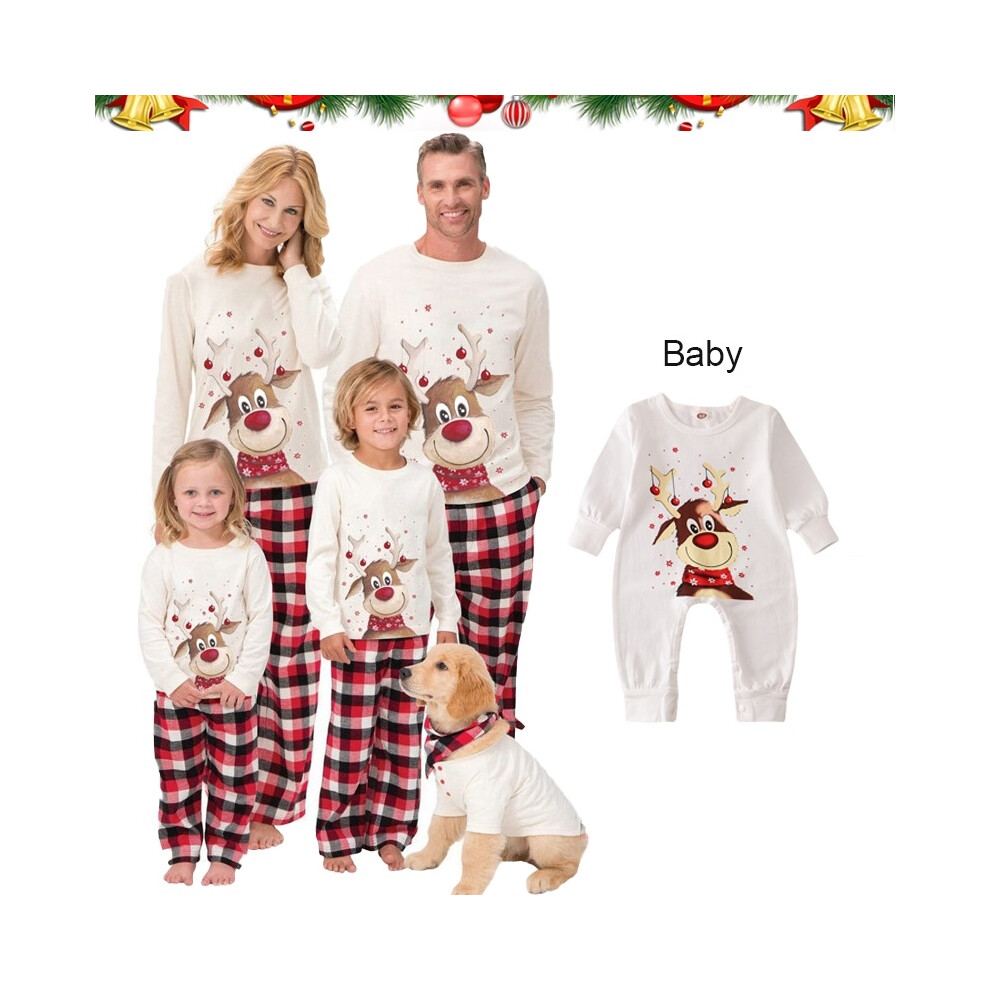 (Baby 0-3M) Xmas Family Matching Pajamas Set Cute Deer Adult Kid Baby Matching Outfits 2024 Christmas Family Pj's Dog Clothes Scarf