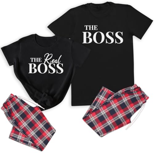 The Boss & The Real Boss - Couples Matching Pyjamas - Top & Tartan PJ Bottoms - (Sold Separately) Black