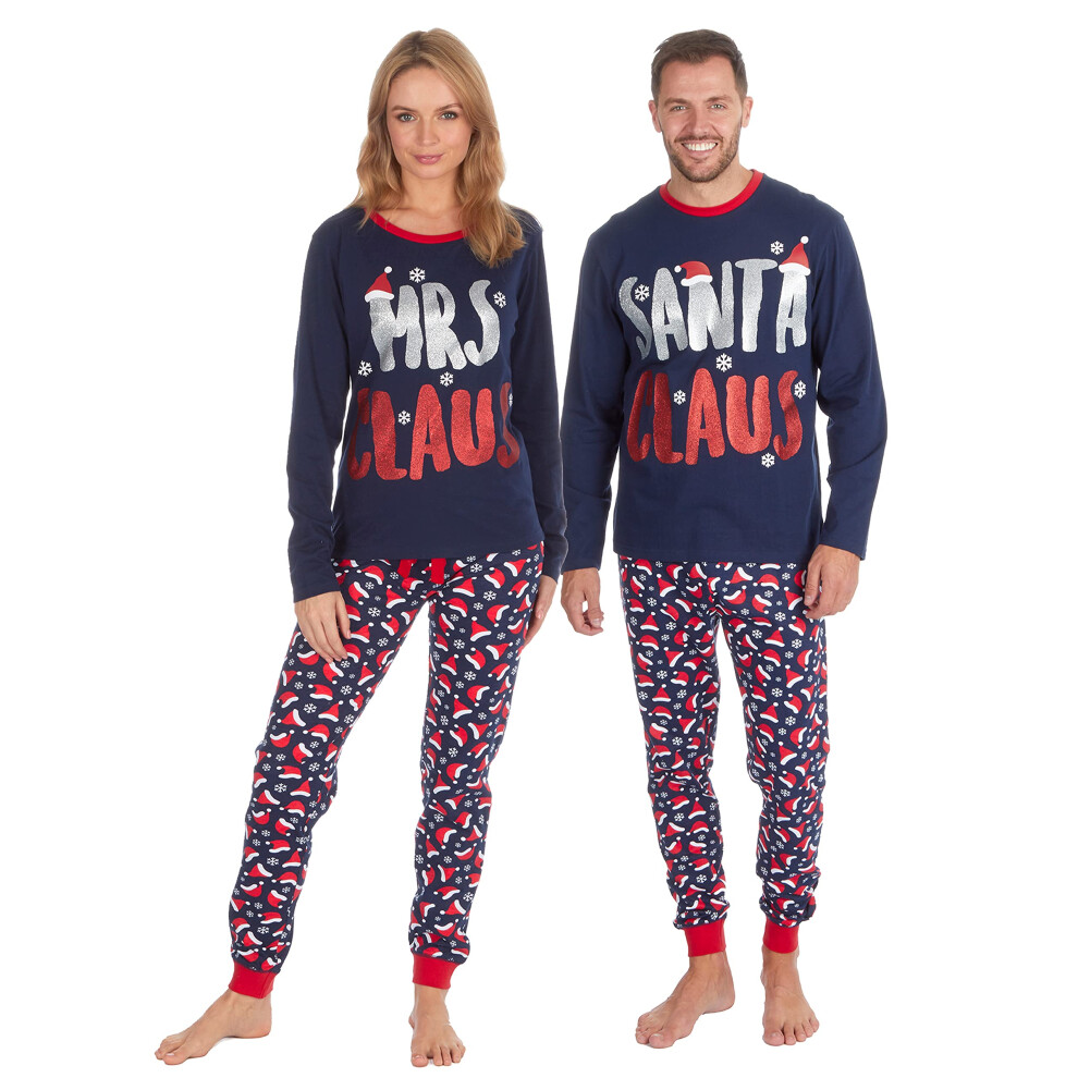 (Navy, For Him M For Her L) Christmas Pyjamas Adults Mens Womens Matching Couple Pj Sets Cotton Pajamas Xmas Design Long Sleeve T-Shirt & Pants Nightw