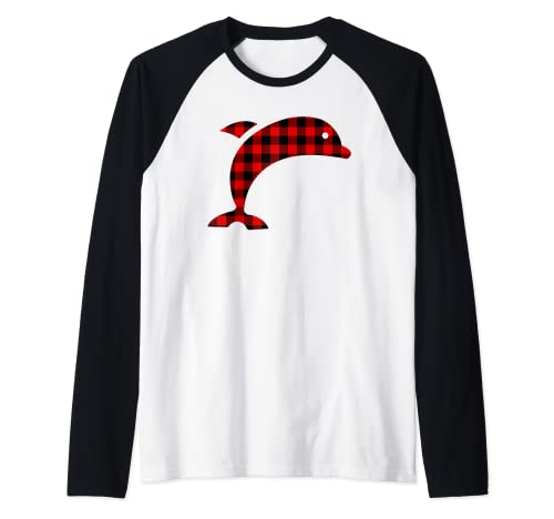 Dolphin Red Buffalo Plaid Beluga Matching Family PJ Gift Raglan Baseball Tee