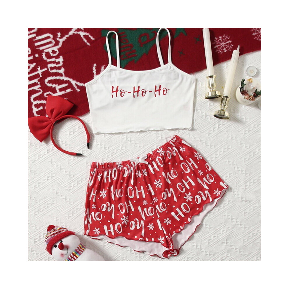 Christmas Family Matching Pajamas Set With Pants Loose Spaghetti Strap Intimate Cami Top Lingerie Autumn Sleepwear Women Pj Set