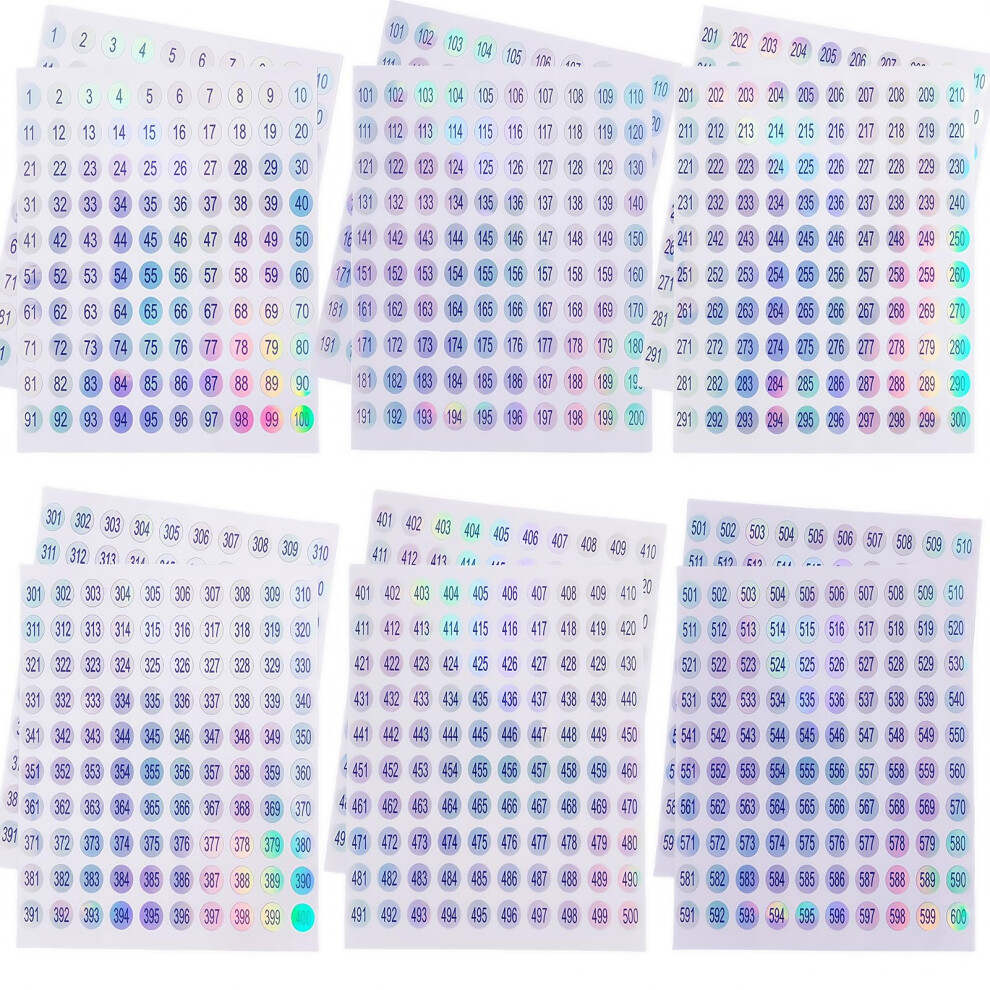 2 Set Number Stickers (1-600) for Nail Swatch Sticks & Nail Gel Polish Organize Double Small Holographic Numbers Stickers for Matching Label Adhesi