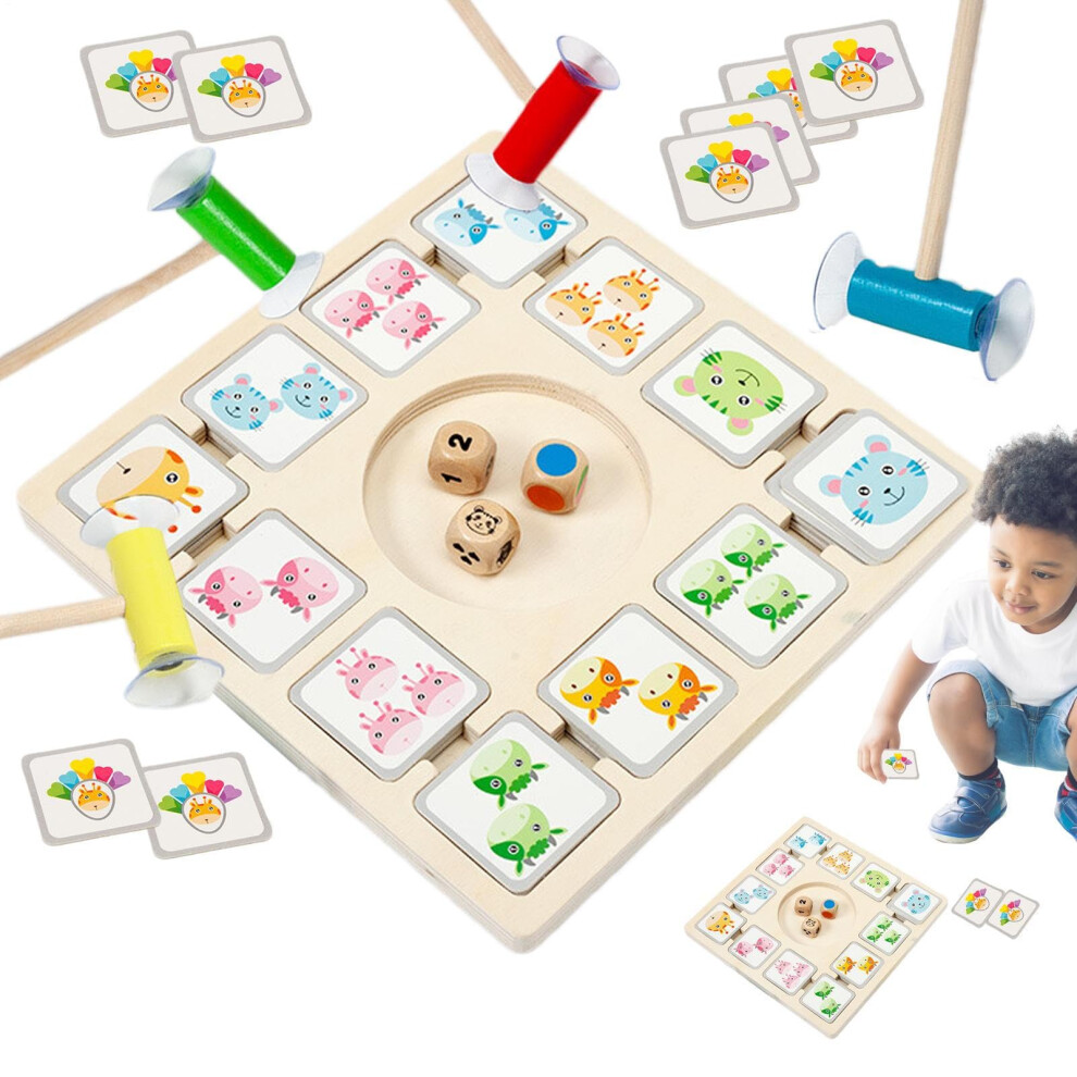 Wooden Matching Board Preschool Educational Activities with 96 Cards, 3 Dice, 4 Suction Sticks, Early Learning Toy for Girls Ages 4