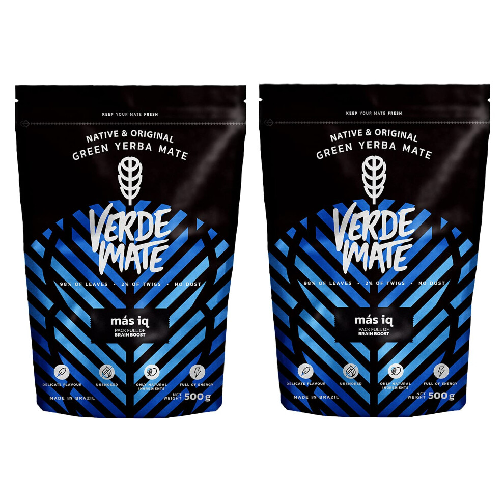 Verde Mate Yerba Mate Tea Mas IQ 2x500g ? Air?dried, Unsmoked, Without Stems or Powder, with Guarana and Ginseng, Natural Blend from Brazil