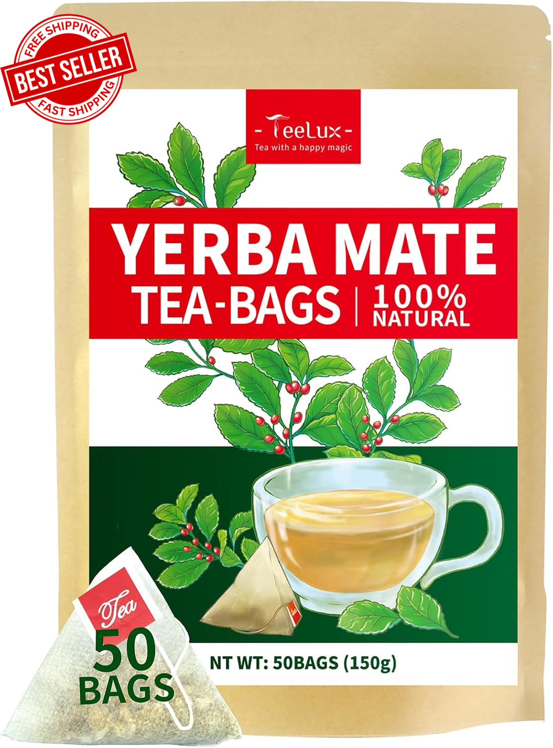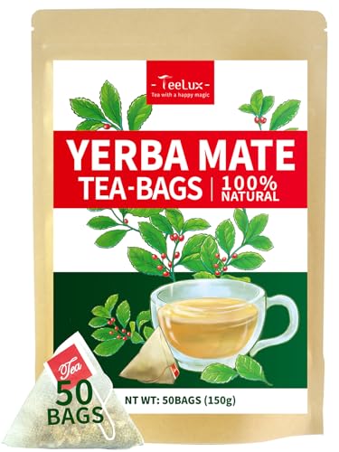 TeeLux Yerba Mate Tea Bags 50 Count, Pure Natural Argentine Yerba Mate, Rich Flavor with 3g/Bag, Biodegradable Tea Bag