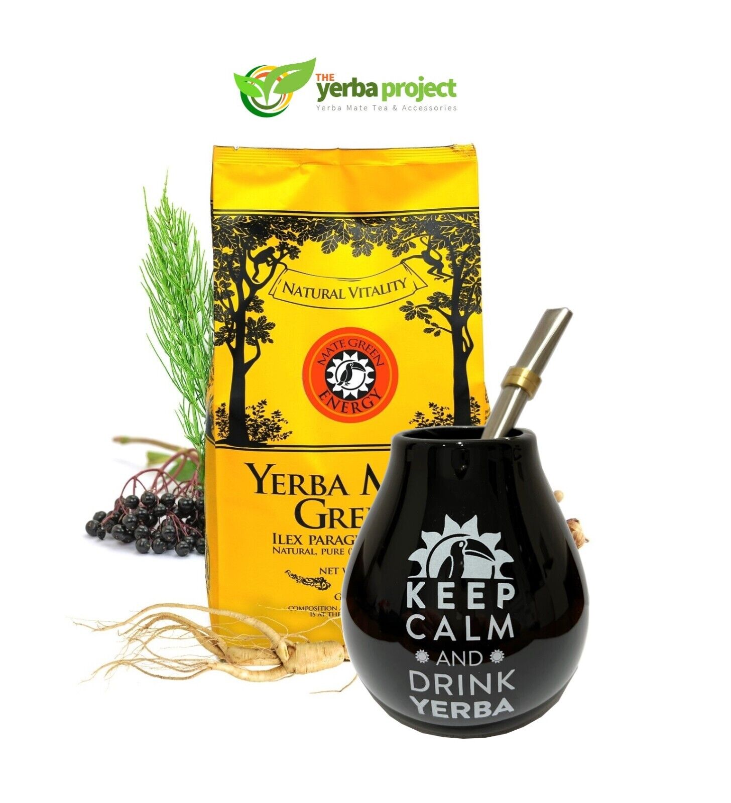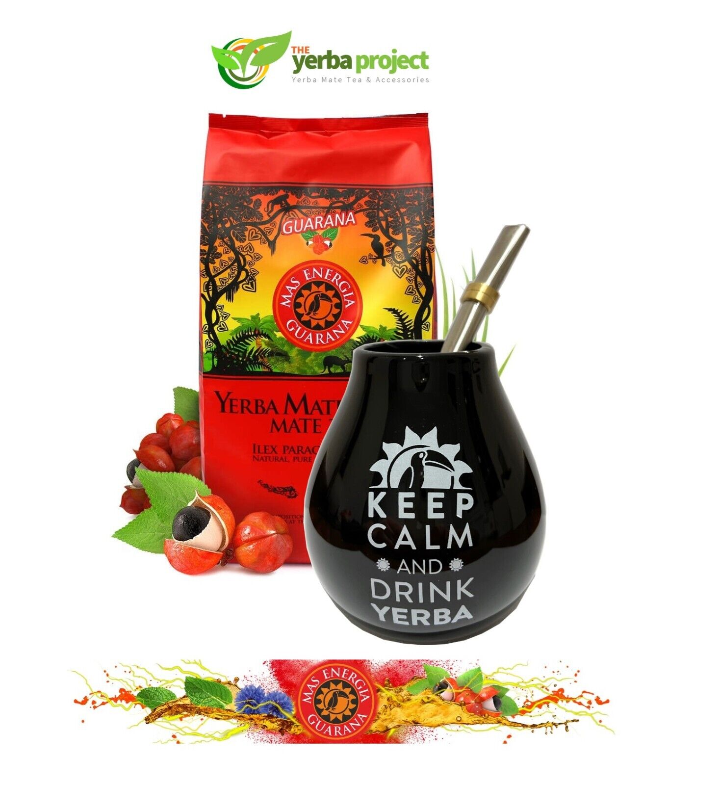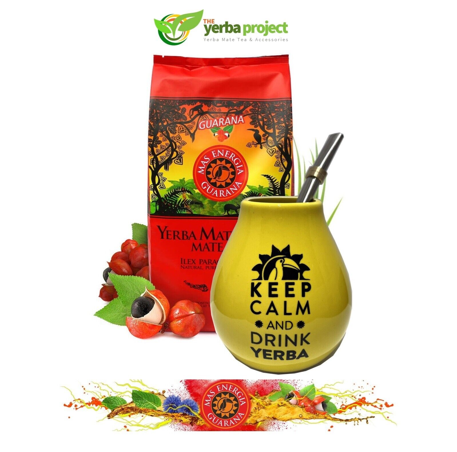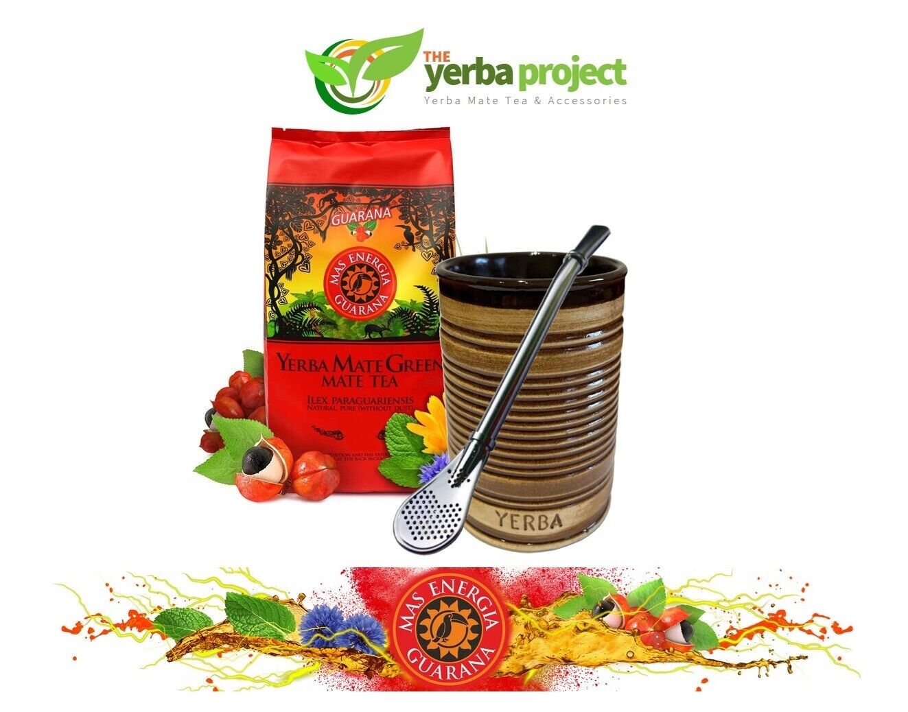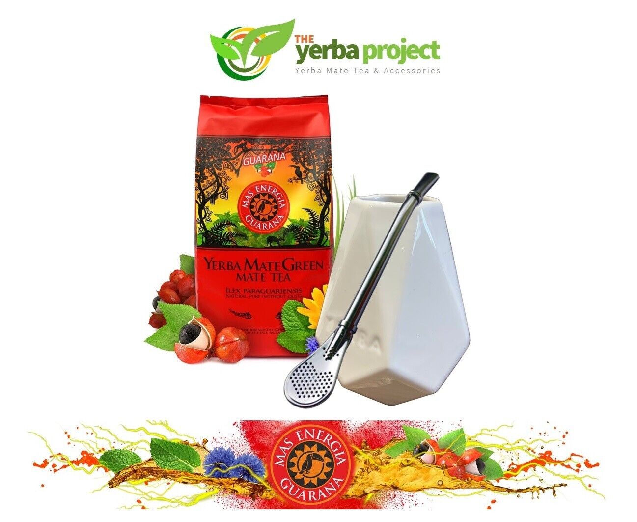 Yerba Mate Tea Set Verde Mate Mas IQ Guarana Brain Boost Unsmoked Low Dust 1kg